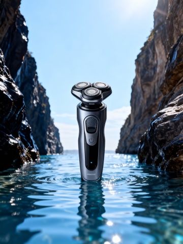 科技感与未来感交织的3D渲染设计,轻拟物风搭配金属质感,简约主义美学呈现清透清爽视觉,水面倒影增强现代感。