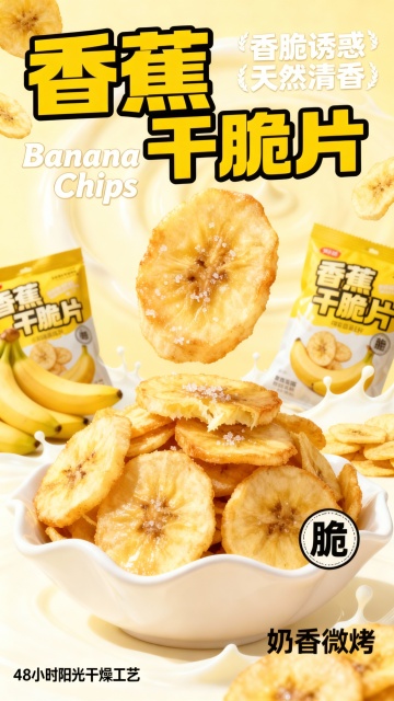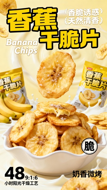 清新感与文艺感交织,双色设计风搭配重拟物风呈现薯片质感,胶片风色调营造舒适氛围,印刷风文字点缀,传递时尚而温柔的味觉期待。