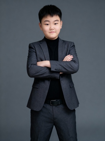 参考第一张图保留人物脸型、发型、年龄特征生成证件照标准样式;参考第二张图的人物占位和比例;提亮肤色,消除暗沉,均匀肤色;居中平视正面视角,纯正面,胸部以上半身像;画质清晰,零噪点降噪;表情自然,头颈肩关系合理,结构准确,去除人物之外的所有元素,头部完整;哔叽材质的藏蓝色西装,领口和衣襟处有细条白色明线装饰,内搭白色衬衫,轻度磨皮美颜,精致且高级的黑色斜向微微渐隐光泽感商务感哑光领带,简约白色背景,严格按照第一张图的内容生成。