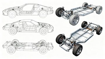 蓝色渐变背景,从深蓝到浅蓝的平滑过渡,光线从下方柔和照亮,营造出科技感与未来感的氛围。一辆轿车的侧面轮廓,以蓝色线条和电路板纹理构成,内部可见复杂的电子元件和线路结构,车轮为多辐式轮毂设计,带有金属光泽。车身下方有明亮的反光效果,地面由蓝色的科技感线条和电路图案组成,右上角有向上延伸的线条和数字代码图形,整体呈现出透明的全息投影质感,风格统一的科技主题设计,无文字信息。