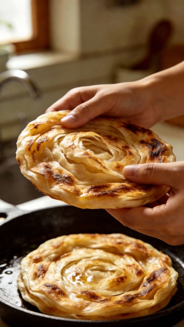 【一碰掉渣,听见酥脆】特写一只手轻轻触碰潼关千层饼,饼皮瞬间掉落细密的碎屑,背景虚化突出饼的纹理,空气中仿佛回荡着“咔嚓”的酥脆声响【一碰掉渣,听见酥脆】特写一只手轻轻触碰潼关千层饼,饼皮瞬间掉落细密的碎屑,背景虚化突出饼的纹理,空气中仿佛回荡着“咔嚓”的酥脆声响