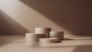 一张写实风格的白色几何展示台图片,画面中由三个不同高度的白色几何体块构成展示平台,呈现出简洁的立体结构。采用柔和的自然光照明,光线从左上方照射,在几何体块表面形成自然的明暗过渡和清晰的投影,展现出光滑细腻的白色哑光材质质感。整体构图简洁大方,以纯白色为基调,背景为纯白色,突出展示台的立体形态和空间感,营造出简约、现代、专业的氛围,适合作为产品展示的舞台背景。