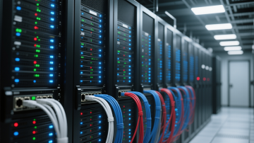 轻量化风格的数据存储场景,包含简约的服务器机柜、云存储图标、数据流线条,整体色调采用科技蓝与浅灰,画面简洁明快,扁平化设计风格,无复杂装饰