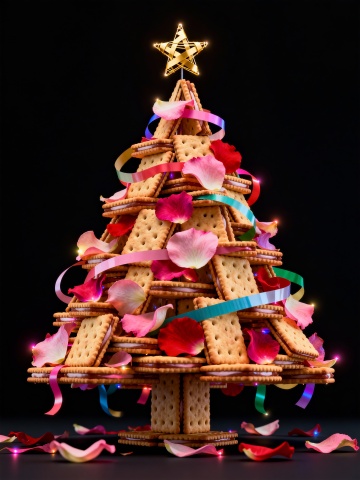 主体:立体毛绒圣诞蛋糕(三层结构,底层红绒、中层白绒、顶层绿绒,表面缀毛绒糖霜、毛绒彩球、毛绒星星);点缀:毛绒餐垫(奶白短绒,绣圣诞花纹)铺在桌面,摆 1 个迷你毛绒圣诞帽、1 串小毛绒彩灯;甜品:1 个迷你毛绒苹果派(红绒表层,“苹果块” 是红绒拼接,铺白绒奶油边),放蛋糕旁;场景:星光灯 + 暖黄主光结合,照亮蛋糕绒面蓬松感,背景是局部毛绒墙面(仅圣诞装饰区域裹绒),氛围梦幻聚焦主体