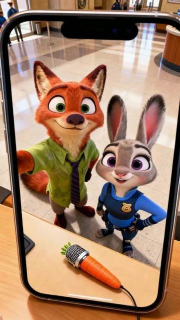 卡通感与3D角色风融合,动漫风格呈现《疯狂动物城2》首映现场,人物与角色互动生动,节日氛围浓厚。