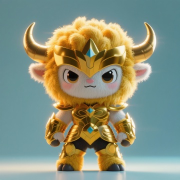 一只毛绒绒的生肖牛,可爱软萌,毛发蓬松柔软,色彩温暖,细节丰富,插画风格