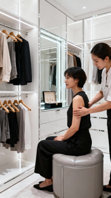 一位穿着米黄色长袖连衣裙的女性,裙摆自然垂落,袖口有精致的白色蕾丝装饰,她正提着多个购物袋行走,购物袋包括白色、红色和米色等不同颜色,搭配棕色的绳制提手。她穿着米色的粗跟凉鞋,脚踝处有细带设计。背景是模糊的城市街道,温暖的灯光形成散景光斑,营造出舒适惬意的购物氛围。整体画面采用写实风格,光线柔和,以暖色调为主,光影过渡自然,突出女性优雅的姿态和购物后的满足感。