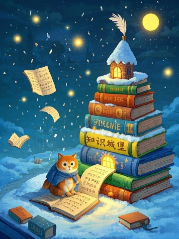 一幅充满梦幻感的插画,画面中心是一颗巨大的、散发着温暖黄色光芒的星星,星星表面有柔和的光晕和闪烁的星点,一只毛茸茸的白色小猫正趴在星星的右上角,睁着圆溜溜的蓝色眼睛,露出可爱的小爪子。周围是绿色调的夜空背景,点缀着许多大小不一、散发着不同颜色微光的星星,其中一颗拖着长长的金色彗尾划过天际,左上角还有一弯明亮的月牙。地面上长满了绿色的草丛和五颜六色的小花,草叶和花瓣上似乎沾染着星光的碎屑,整体画面采用厚涂油画质感,色彩柔和且富有层次感,光影细腻,营造出宁静而温馨的夜晚氛围。