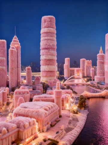 梦幻粉嫩毛绒塔,融合毛发生长风与面料质感,营造甜蜜可爱氛围,虚拟现实美学呈现清新柔和体积感。