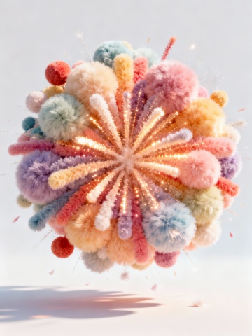 毛茸茸的3D数字“2026”搭配卡通闹钟与烟花,软萌质感融合梦幻光影,营造喜庆可爱的跨年氛围,迎接2025光辉岁月。