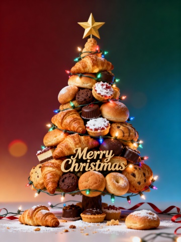 本作品以日常烘焙面包与甜点作为构成材料,将牛角包、圆面包与糖霜点心层层叠加,重构出一棵温暖而真实的圣诞树。面包象征分享、陪伴与日常的温度——它并非节日专属,却在节日中被重新点亮。通过将食物转化为节日符号,作品尝试打破传统圣诞树的固有形象,让“百变”不只是形式的变化,而是来源的转移:从装饰走向生活本身。这是一棵可以被感知、被想象、甚至被分享的圣诞树,承载着冬日里最朴素的幸福感。 🎄百变圣诞树