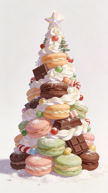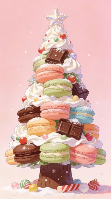 软3D风毛绒圣诞树,点缀草莓与巧克力,温馨梦幻,充满甜蜜可爱感,节日氛围浓厚。