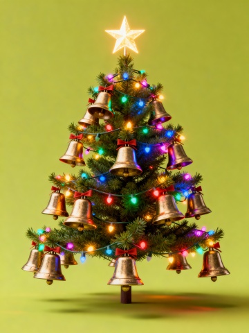 梦幻光影交织的3D圣诞树,鎏金粒子环绕,科技感与奢华感并存,虚拟现实中的唯美元素点亮节日氛围。
