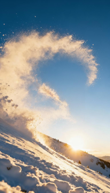 实景感与光影交织,滑雪者疾驰雪原,动感十足。大字风标语“让冬日飞扬!”搭配粒子飞溅效果,传递热血与酷炫的运动风,尽显冬日清爽与时尚张力。