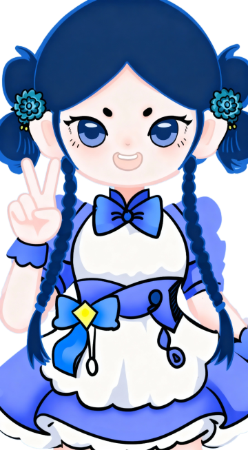 软3D风可爱卡通少女,身着古装,手持花扇,萌趣十足。