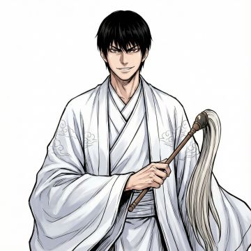 一个英俊的中国古代道长,飘逸的黑发,打太极