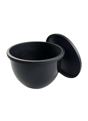 六个完全不同的黑色陶瓷餐具,包括深口碗、浅盘、带盖汤碗、方形餐碟、高脚碗和双耳炖盅,每个餐具都具有与原图一致的光滑釉面质感、同心圆环状凹纹装饰和哑光黑色调,以2x3网格形式规整排布在纯白色背景上,保持相同的45度角俯视角、清晰的边缘轮廓和柔和的阴影效果,整体呈现简约、统一的产品展示风格。