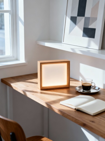 暖光木雕风台灯,置于书本之上,营造温馨质朴的居家氛围,柔和光影交织,尽显实景生活美学。
