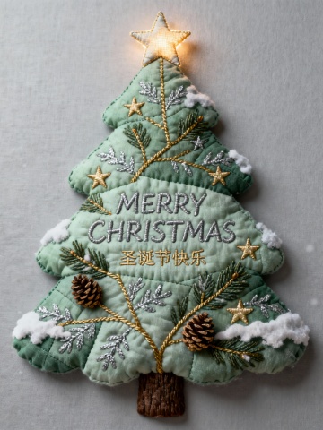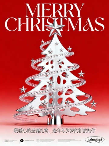 三棵艺术圣诞树占据视觉主导,文字信息简洁集中于画面中心。整体设计通过色彩与造型的巧妙组合,呈现节日与艺术交融的视觉表达。