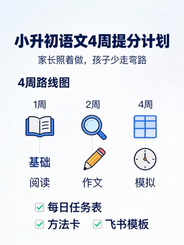 手绘风格信息图,3:4比例,标题为“模块三:模板执行系统——把方法变成‘脚手架’”。内容分三栏: 基础:三维错题本(形近/同音/多音字)、语境造句卡 阅读:记叙文“六要素概括法”、说明文“方法+作用”答题模板 作文:3类高分结构(总分总/悬念递进/场景并列)+ 五感描写训练 每栏配简笔图标:错题本、放大镜(审题)、作文提纲框架。底部标语:“不是限制创意,而是先搭好骨架”。整体像一页教学备课笔记,有荧光笔标记和便利贴效果。