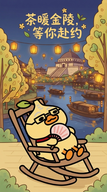 水墨风与国潮风交融,扁平化插画展现江南水乡静谧之美,柳影婆娑,白鹤掠空,清透柔和的色调营造出清新舒适的古典意境。