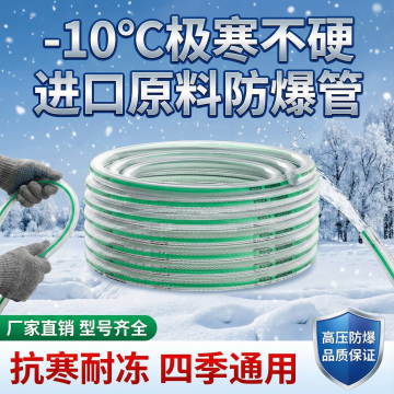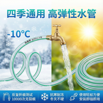 这张图片是产品主体这款产品是科麦罗PVC高压防爆软管 我需要设计10张主图在拼多多上面售卖 可以用 超低温 下雪等场景进行主图场景布局设计一个高级一些主图文案内容 进口原料 出水顺畅 高弹性 四季通用 -10度冬天不硬 防摔耐磨 寿命更长 柔韧耐折 反复折不留痕不发白 高压防爆 品质保证 耐磨抗压 使用轻松方便 厂家直销 型号齐全 没有中间商赚差价 源头厂家 抗寒耐冻 冬天水管 依然柔软