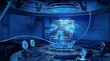 超写实3D渲染风格的电路板特写,中央位置有一个造型变换为六边形的处理器芯片,芯片表面呈现深邃的紫色调并散发着柔和的紫色光芒,周围环绕着金色的光晕。电路板上的线路和电子元件造型进行了未来感的几何化调整,整体色彩变换为以深邃的紫色和神秘的靛蓝色为主色调,搭配金色的电路纹理和点缀其间的亮青色光点,营造出高科技、神秘而充满未来感的氛围。光线从芯片中心向四周柔和辐射,形成清晰的光影层次,背景中的电路板细节丰富,具有细腻的金属质感和精密的结构,整体构图保持中心聚焦的对称美学,突出主体芯片的视觉冲击力。