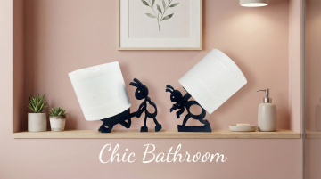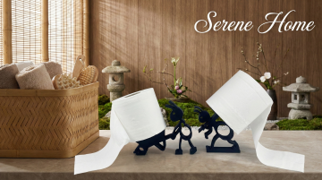 以图中的卷纸架为元素,家居装饰,物体主体特征不变,设计6张跟卷纸架有关的图,可以适当加一些英语文案点缀一下,比例 「16:9」