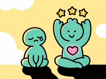 鲜花,小朋友坐在上面;一个人正坐在叶子上看书,一个人侧作在花蕊上看书,周围爆炸星星,简单线条点缀;潮流感,撞色,鲜艳明快配色,黄色背景。扁平插画风格