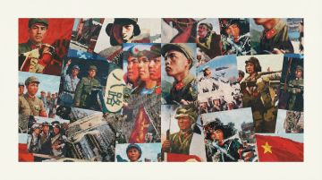 红金双色版画风,大字“76”鎏金质感,人群高举旗帜奔涌向前,融合喜庆、政务与热血励志气息,插画风格展现时代奋进图景。