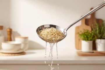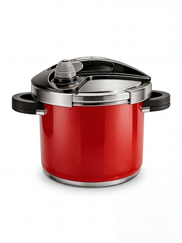 帮我生成图片:白底图的产品是一款压土豆泥神器,请在保证此产品主体样式不变的基础上,底部的孔洞均匀地压出土豆泥出来,生成底部孔洞均匀压出土豆泥的压土豆泥神器效果图,效果参照提供的使用场景图片