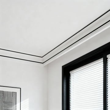 极简主义风格的室内背景,柔和的米白色墙面搭配浅木色人字拼地板,自然光透过米白色半透明窗帘洒入,营造出明亮通透、宁静舒适的氛围。房间中央摆放着一组不同设计的浅灰色布艺沙发,搭配深绿色和浅蓝色的几何图案靠垫,沙发前是一张椭圆形的黑色大理石茶几,上面放置着一个造型简约的玻璃花瓶,插着几支干枯的芦苇。墙上悬挂着一幅抽象风格的装饰画,画面以深蓝色和金色为主色调,呈现出流动的线条感。房间另一侧的墙角摆放着一盆高大的琴叶榕,种植在一个哑光白色的陶瓷花盆中。天花板上安装着一盏造型独特的黑色金属吊灯,灯光温暖柔和。整个空间的配色以低饱和度的灰色、蓝色和绿色为主,搭配原木色的自然质感,展现出简约而不失高级感的现代设计美学。