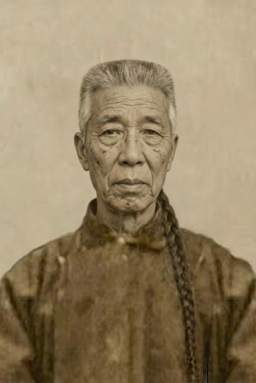 把图片人物面貌变成50岁的模样,帽子改为瓜皮小帽