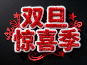 毛绒质感3D字体搭配圣诞元素,重拟物风格呈现喜庆氛围,节日感十足。