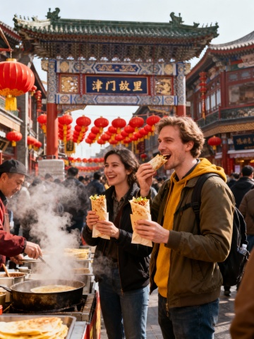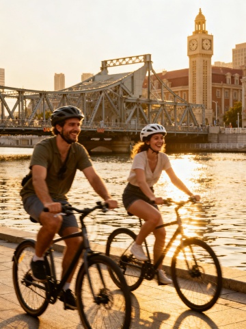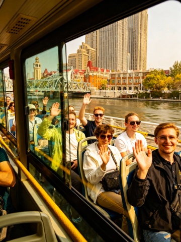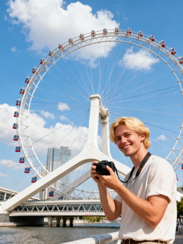 生成10张外国人在天津著名景点,比如天津之眼、观光巴士、天津博物馆等著名景点参观游玩的图片