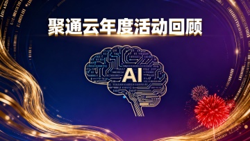 帮我生成一个封面 上面写聚通云年度活动盘点 我们事一家人工智能AI 公司,所以风格要贴合AI 公司的风格。要有创意,同时这也是年会上用的,也要点喜庆的元素。