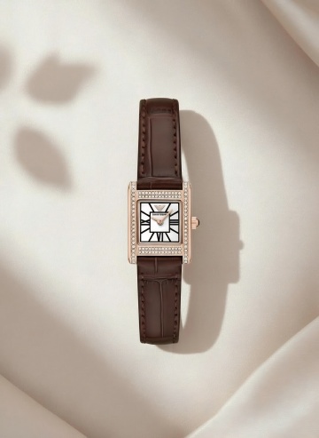 浪漫氛围。产品放置在几张宣纸上,散落着玫瑰花花瓣,玫瑰花枝,高级红色调背景,深色对称窗棂,雾气,斑驳的光影,新中式风格摄影,景深