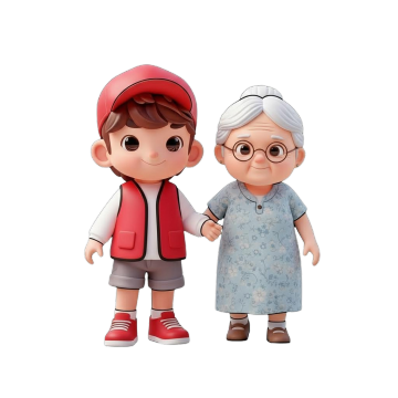 六个不同纯色背景的卡通人物头像系列,保持Q版可爱风格,圆润脸型,简化五官,柔和渐变色彩,粗线条勾勒。画面整体色彩变换,每个头像背景颜色不同。包含以下元素:戴老花镜的白发老爷爷大笑头像、扎发髻的白发老奶奶微笑头像、梳双马尾的小女孩吐舌头头像、戴棒球帽的小男孩比耶头像、穿西装的中年男士点头头像、系丝巾的中年女士眨眼头像,所有头像表情生动,服饰细节简洁,规整排布在同一画面中。