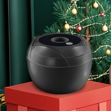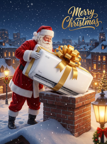 3D轻拟物风格,塑料质感暖风机置于雪景小镇,融合温馨梦幻的圣诞氛围,简约设计传递舒适感,虚拟现实场景呈现节日温暖。