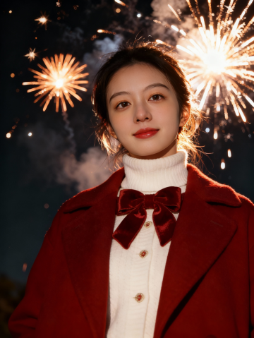 4. 画面前景有彩色纸屑飘落,带有运动模糊效果