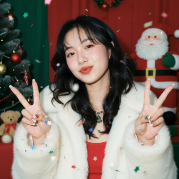 3. 佩戴珠串项链,吊坠为圣诞主题图案