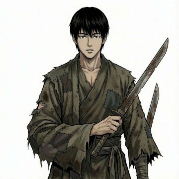 用图片中的风格生成一张图片 中国古代 一个男人抱着昏死过去的孩子 周围躺着几个昏死过去的男女