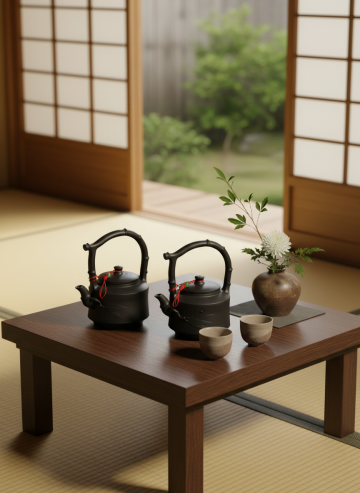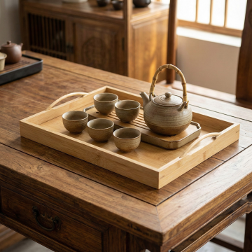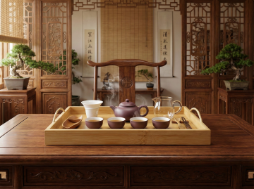 放在茶桌上 产品里面放置一些茶杯 茶具 使得产品近景展示