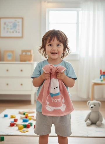 极简主义风格的儿童卧室,温暖柔和的原木色与米白色为主色调,自然光从侧面窗户洒落形成柔和的光影效果,细腻的木质纹理与编织质感的地毯和收纳篮,浅米色墙壁上挂着装饰画,不同形态和布置的木质家具(如带抽屉的储物柜、简约单人床),地面散落着不同尺寸的毛绒玩具熊,整体营造出温馨舒适、简约自然的氛围,干净整洁的空间布局,柔和的光线带来宁静惬意的感觉,不同布置的背景中保持原木色系与编织元素的统一风格。
