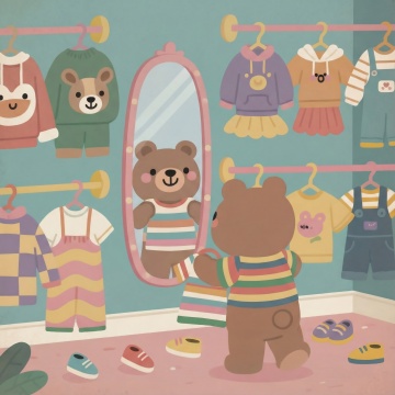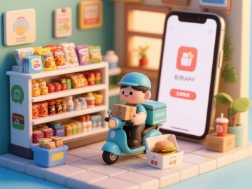 软3D风格街景,卡通角色跃出橱窗,霓虹灯风促销标签闪烁,融合虚拟现实与潮流元素,营造可爱又时尚的购物氛围。