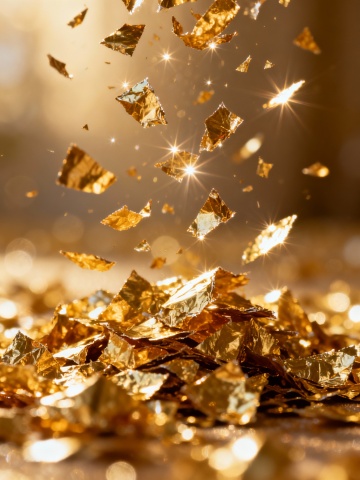 一张具有浓厚国风奢华感的金色背景图,主色调为金黄色,整体呈现出细腻的金箔质感,表面带有自然的纹理和光泽变化,仿佛是由真实的黄金箔片铺陈而成,同时巧妙融入了象征财富与尊贵的金山元素轮廓,通过光影的微妙处理增强立体感,整体画面在保持金箔材质特有的颗粒感和金属光泽的同时,营造出一种庄重而华丽的视觉效果,完美体现了国风设计中对金色的经典运用和奢华大气的审美追求。
