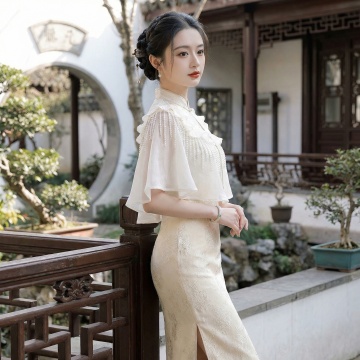 中式古典优雅,国潮风旗袍搭配淡雅花卉,水墨风格尽显东方韵味。