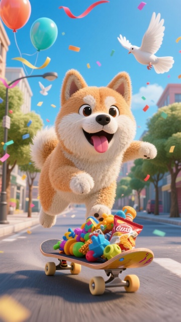 软3D粘土风,萌趣小狗戴围巾,温馨卡通场景,充满可爱与趣味感,适合节日氛围。