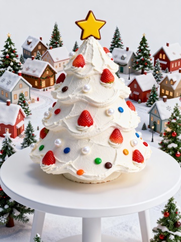 3D重拟物风糖果圣诞树,融合波普艺术色彩与光泽质感,满载甜蜜与趣味,闪耀喜庆梦幻氛围。