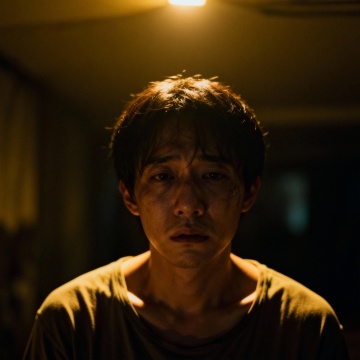 胶片风光影中,沉郁面容透出故事感,实景氛围营造深邃情绪。
